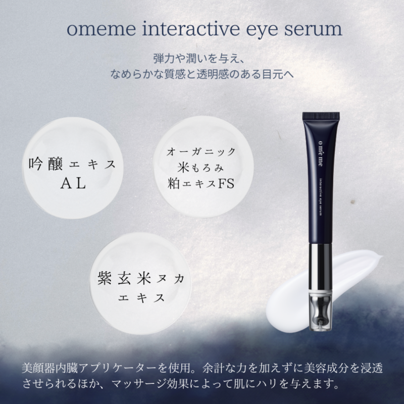 皮膚が薄く他の部位より繊細 な目元に、米や紫玄米のぬかから抽出した自然由来の優しい成分が潤いやハリを与えます。
