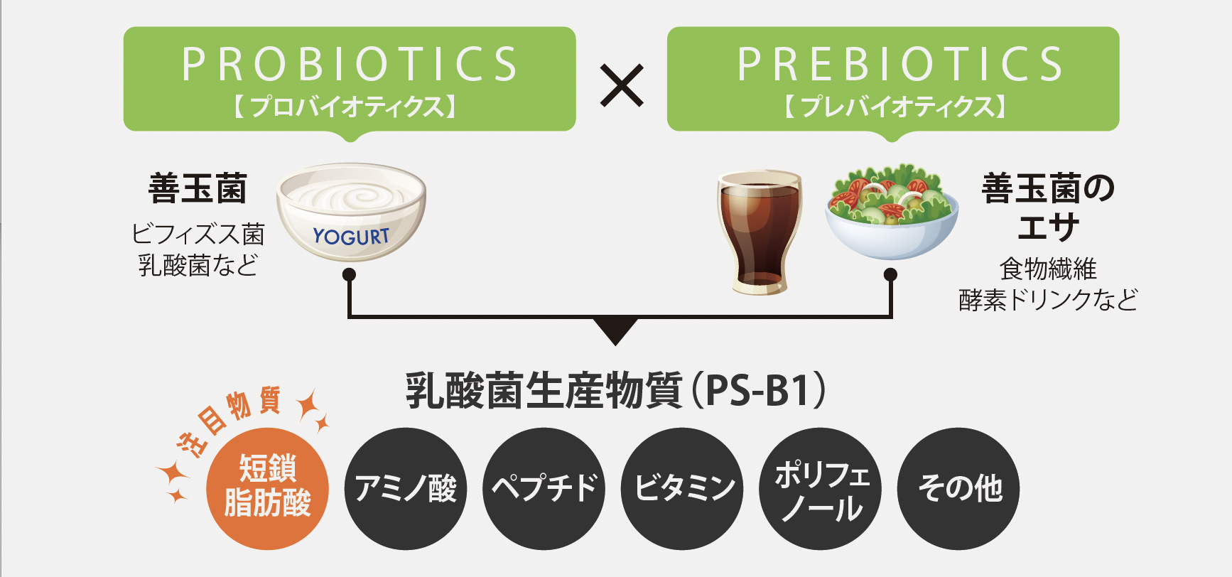 身体の健康にとって「不可欠」と言われてきた乳酸菌とビフィズス菌は、体内で「乳酸菌生産物質」という代謝物を生み出します。