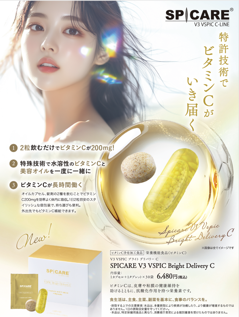 『V3 VSPIC ブライトデリバリーC 』は、ビタミンC*²と注目のシステインペプチド含有酵母エキス でインナーケアが叶います。