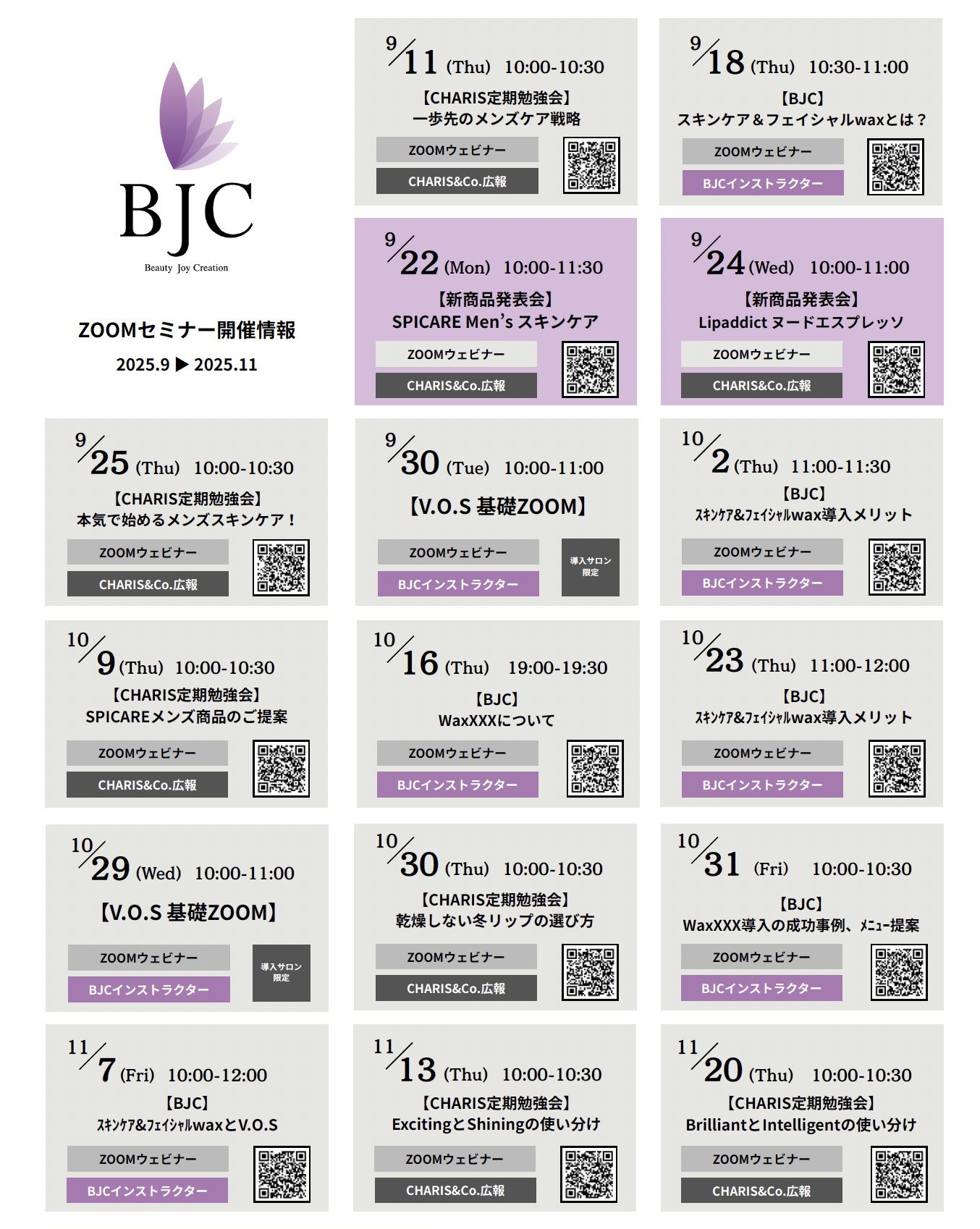 【SPICARE・カリス・BJC】2025年9月-11月 ZOOMセミナー開催情報