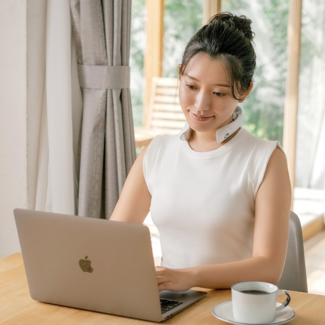 スマートネック極は、日頃から負担がかかりやすい首・肩まわりの筋肉にアプローチするため、EMS運動機器として開発された製品です。