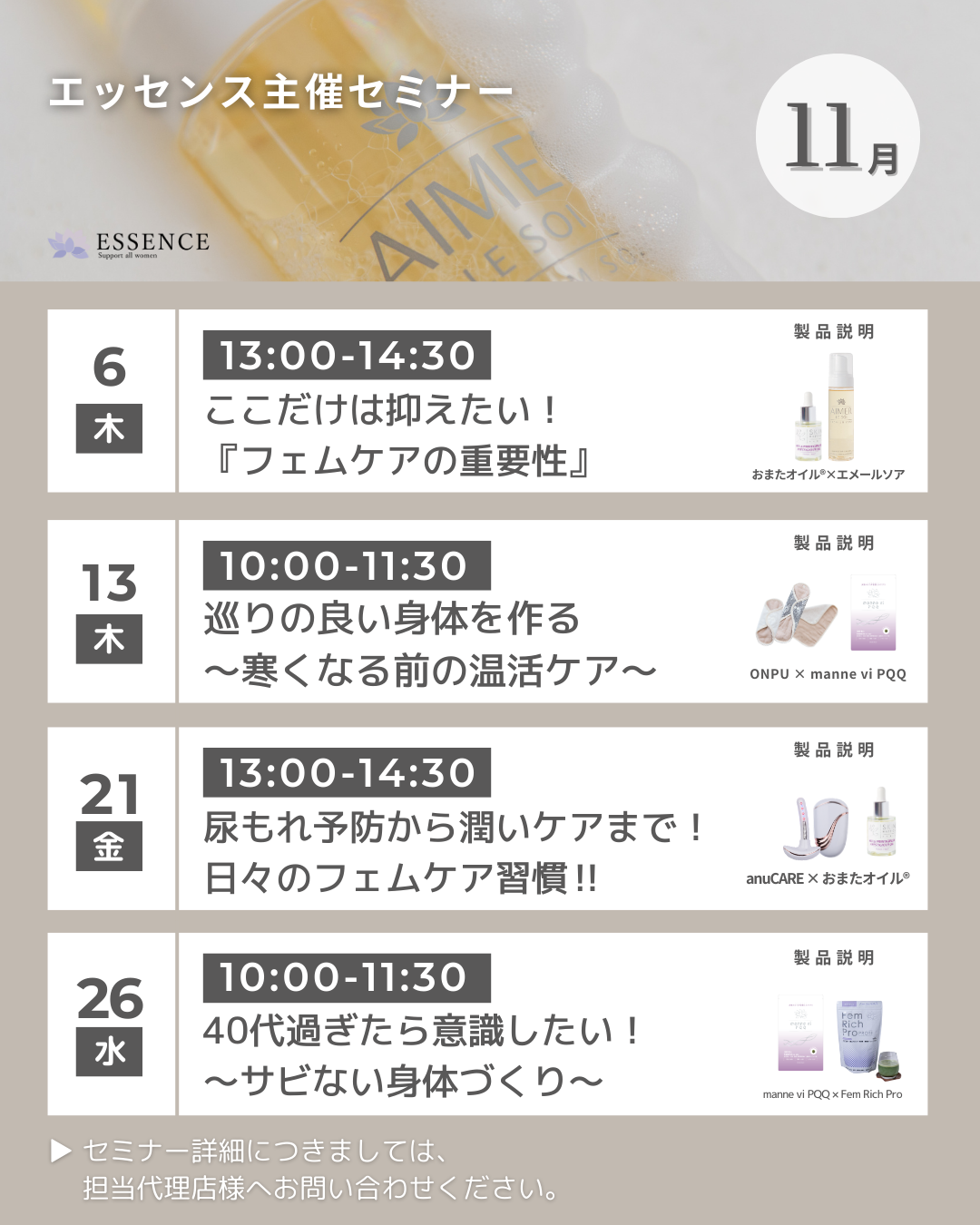 【エッセンス】11月セミナーご案内 (11月6日、13日、21日、26日)